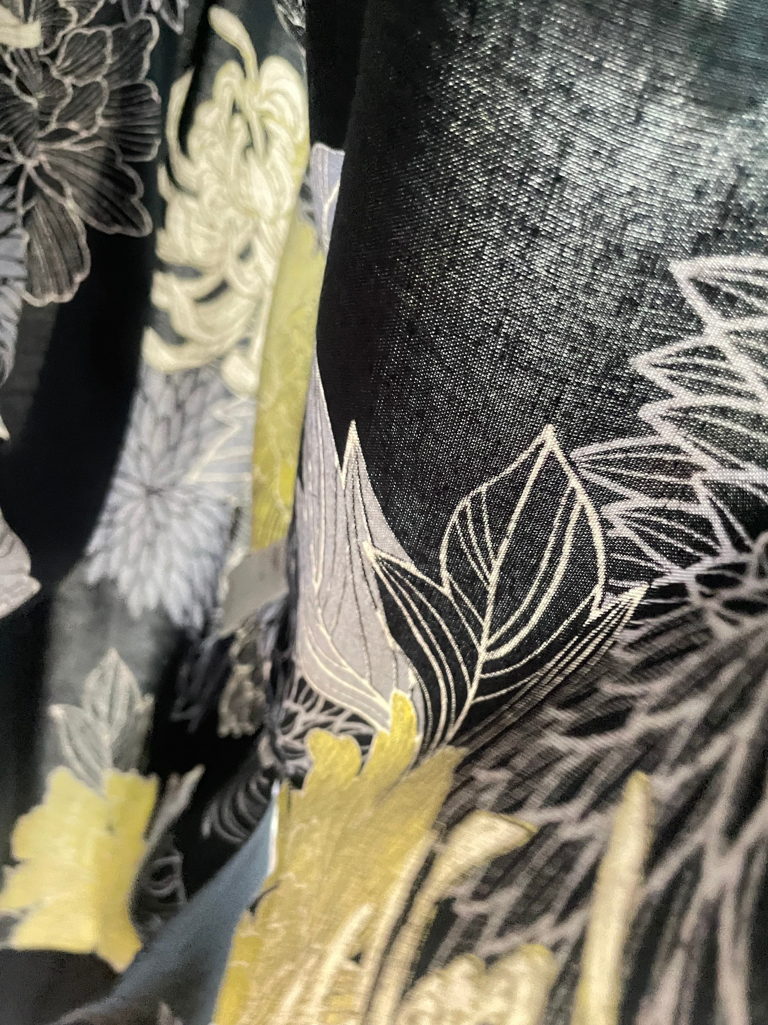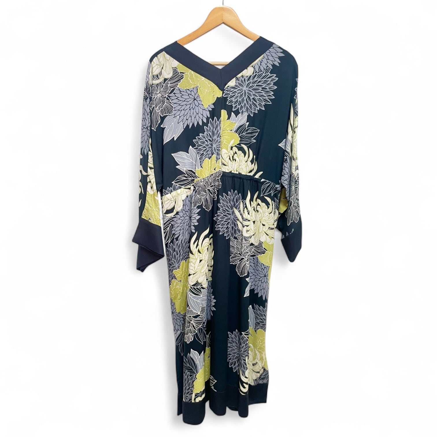繊細な線で表現された、優雅な菊の花模様のワンピース。