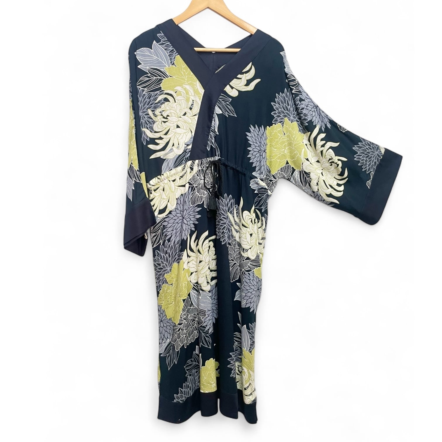 これ一着でも和装気分を味わうことができます。ウエスト部分はタッセル付きの紐で調節でき、着やすいデザインとなっています。
