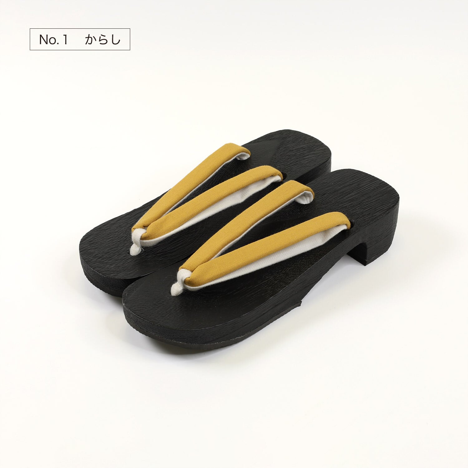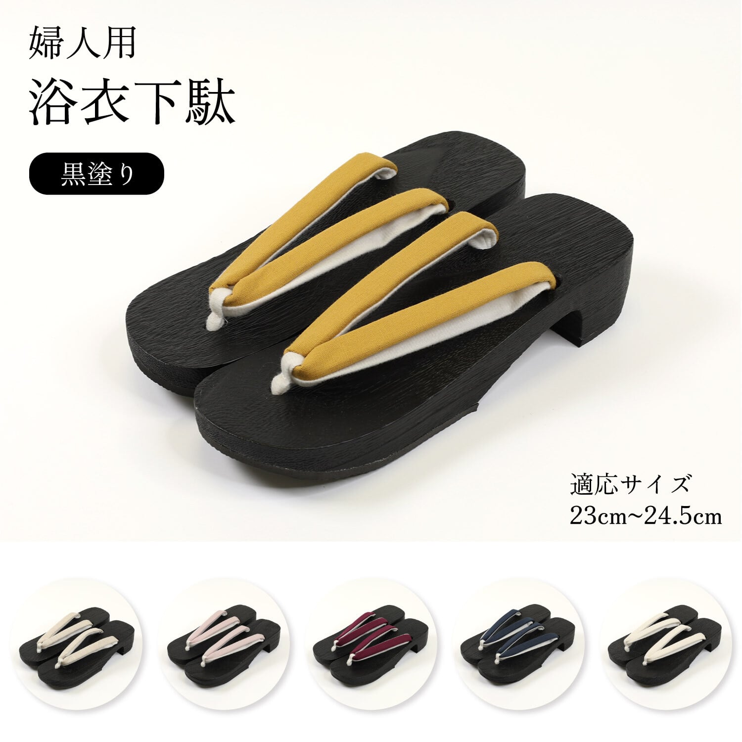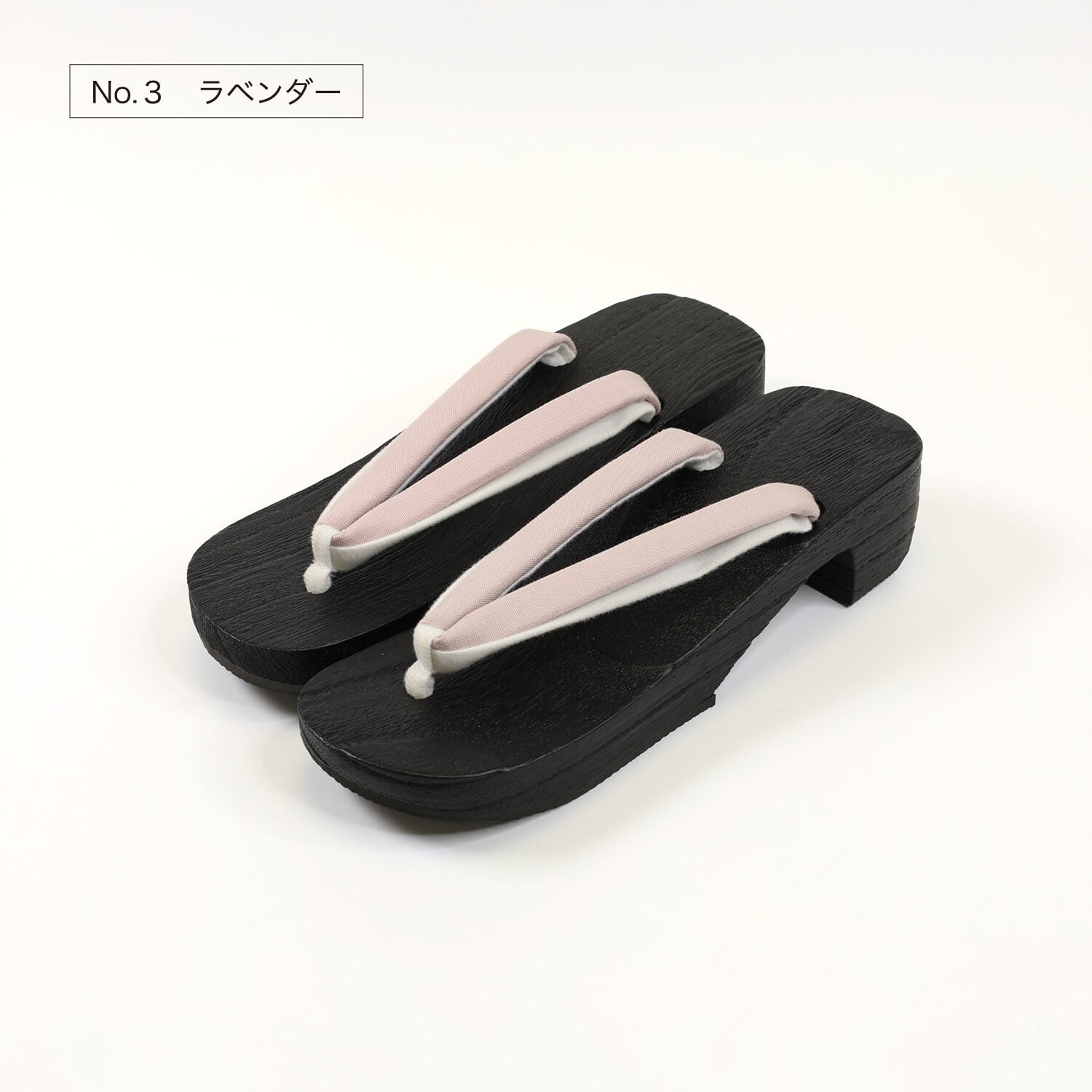 ・汚れが目立ちにくい黒塗りの桐の下駄台。・履きやすい左右が決まった足形の台に、少しヒールがあるので美しい着姿に。・様々な浴衣に合わせやすい無地の綿麻の鼻緒。足の甲の当たる部分には柔らかい生地を使用。