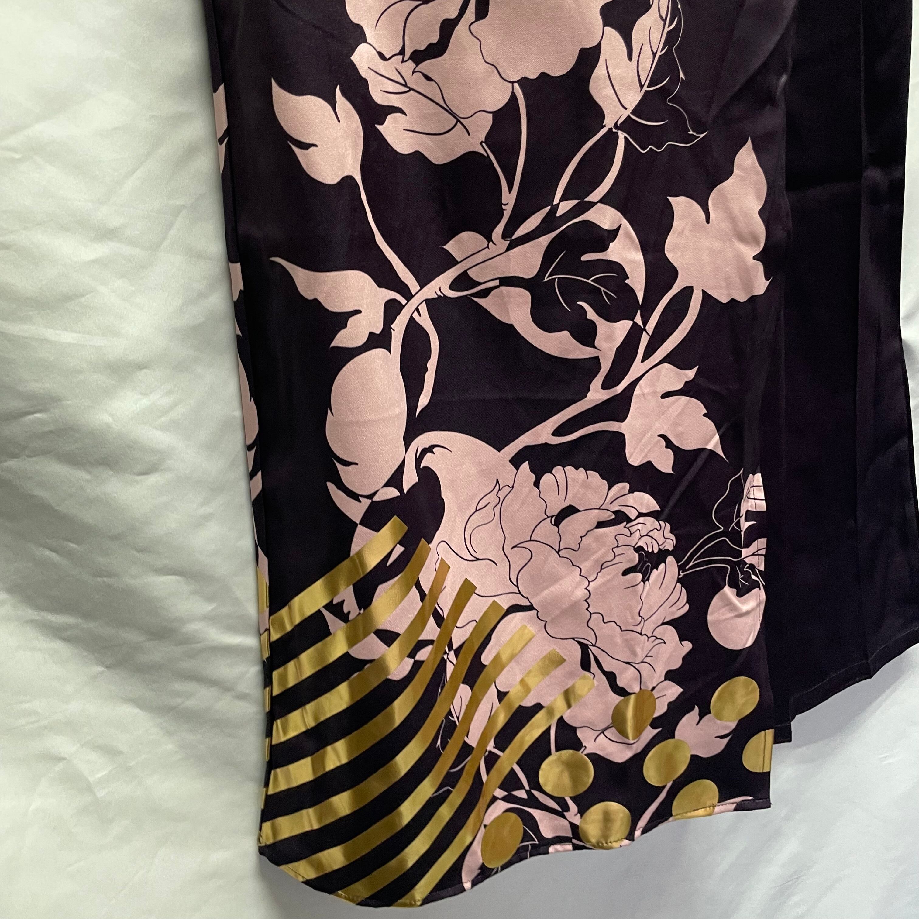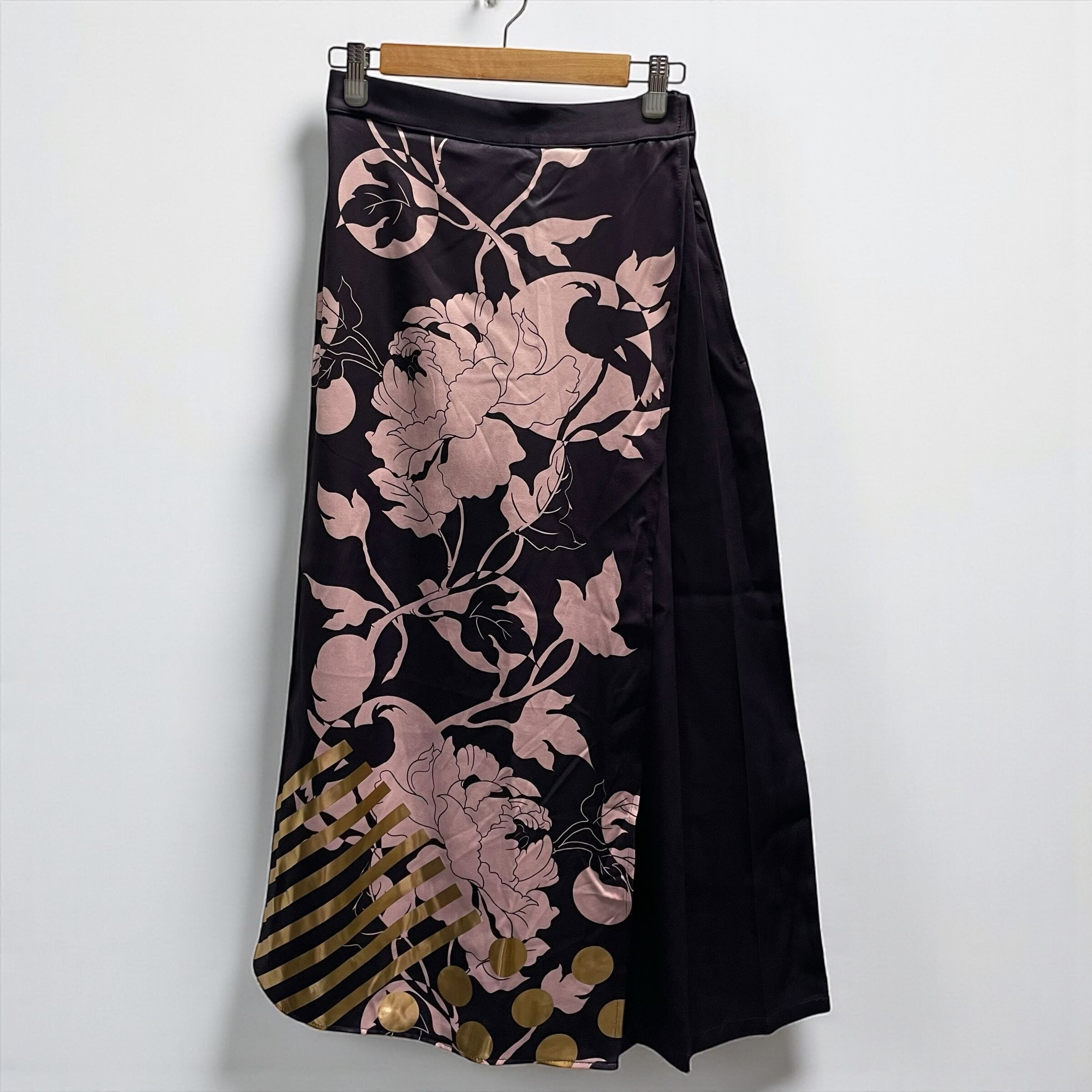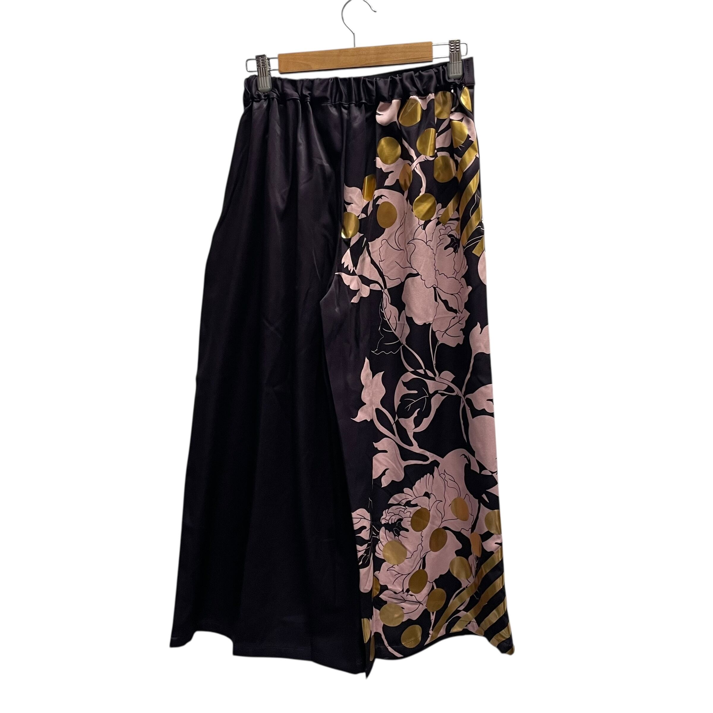 箔プリントが施されており、華やかな印象に。巻きスカートのようなシルエットの間から、プリーツ加工されたパンツが覗くデザインがかっこよく、和のエッセンスを取り入れたモダンなスタイルを楽しめる一枚です。