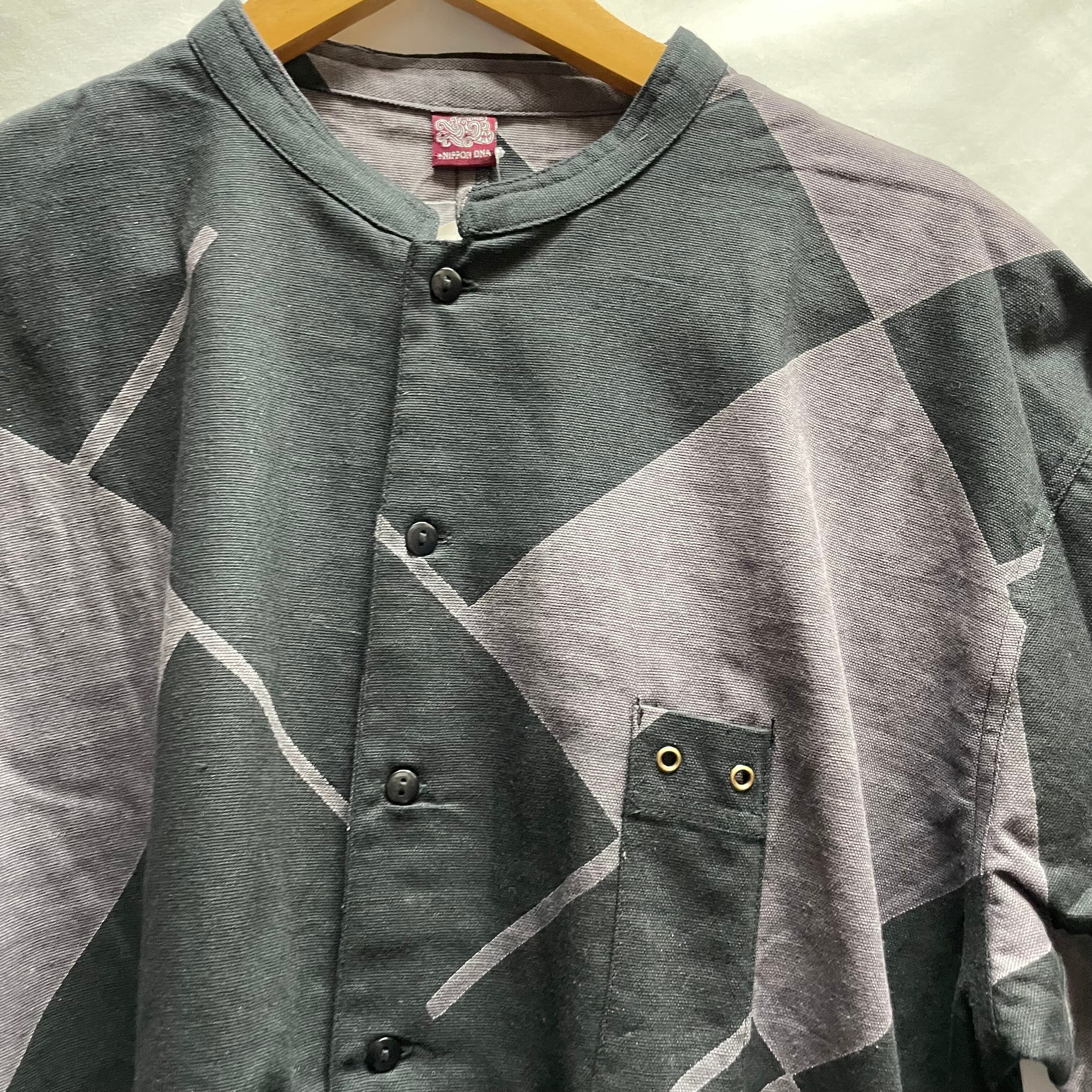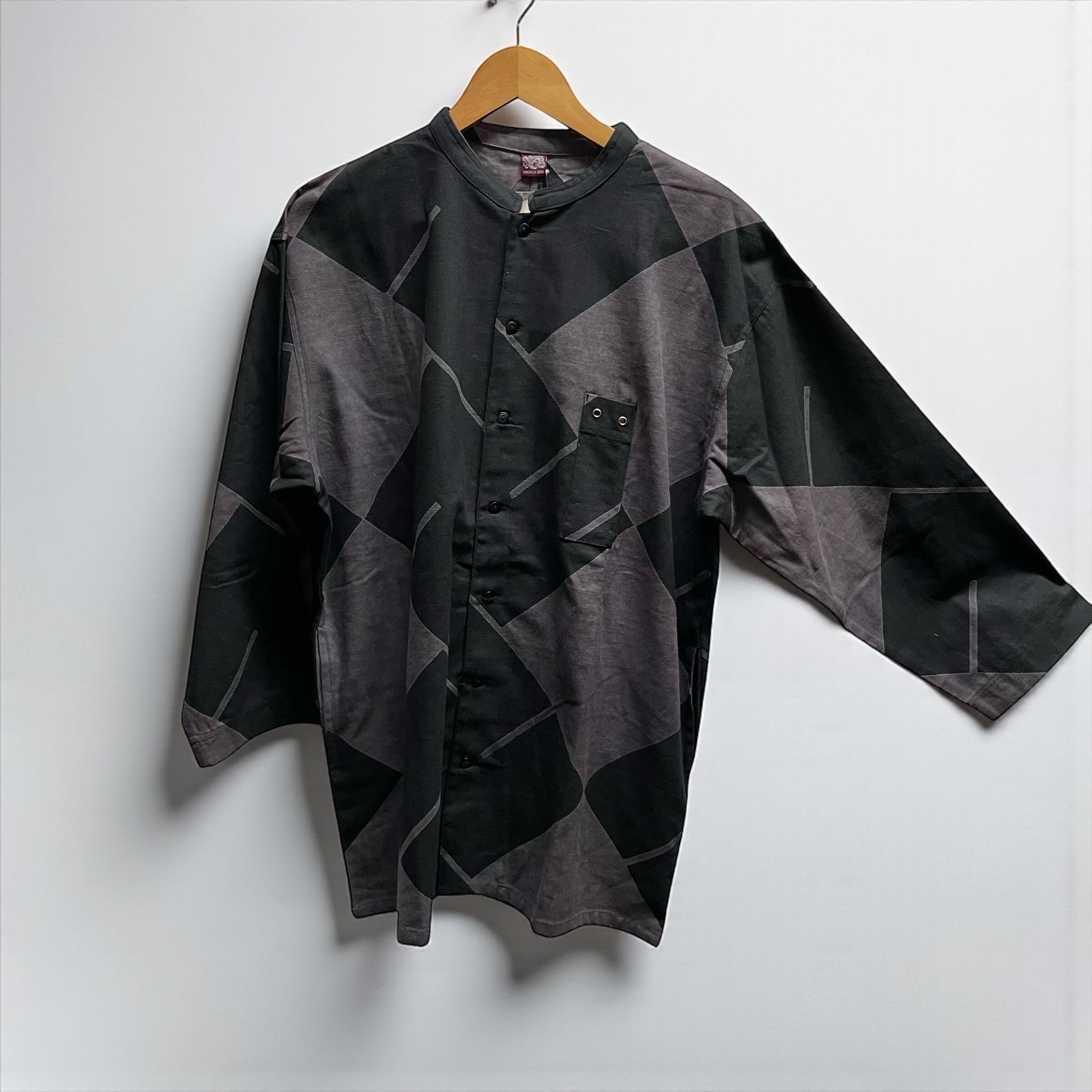 江戸時代の火消しをイメージした勇ましい粋な色柄で、羽織りとしても着られる一枚。左胸には扇子を入れる用の細長いポケット付き。
