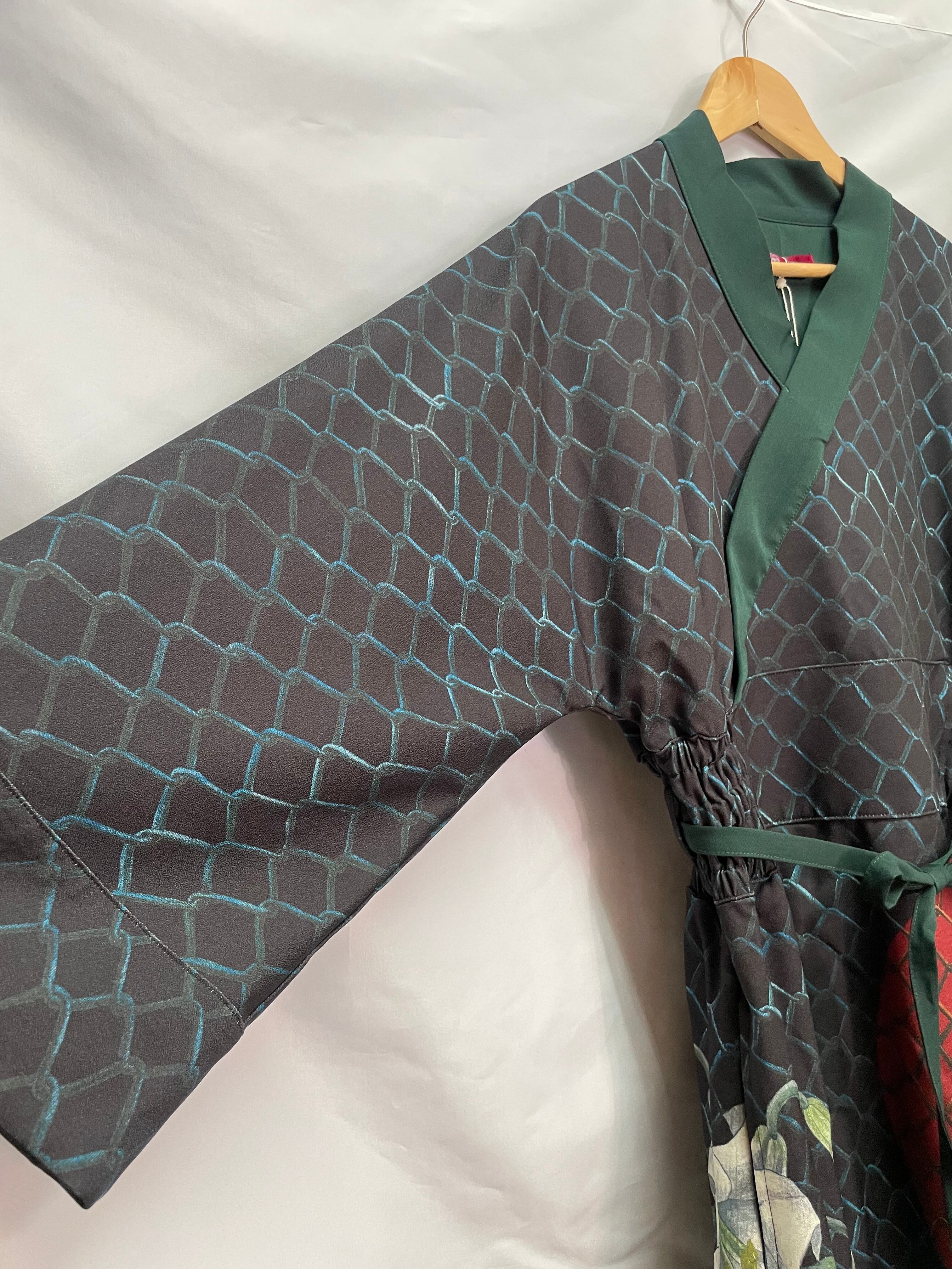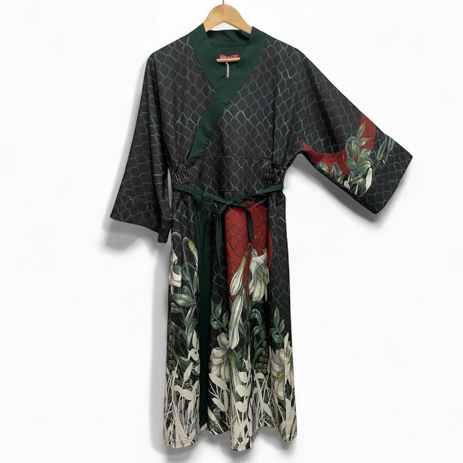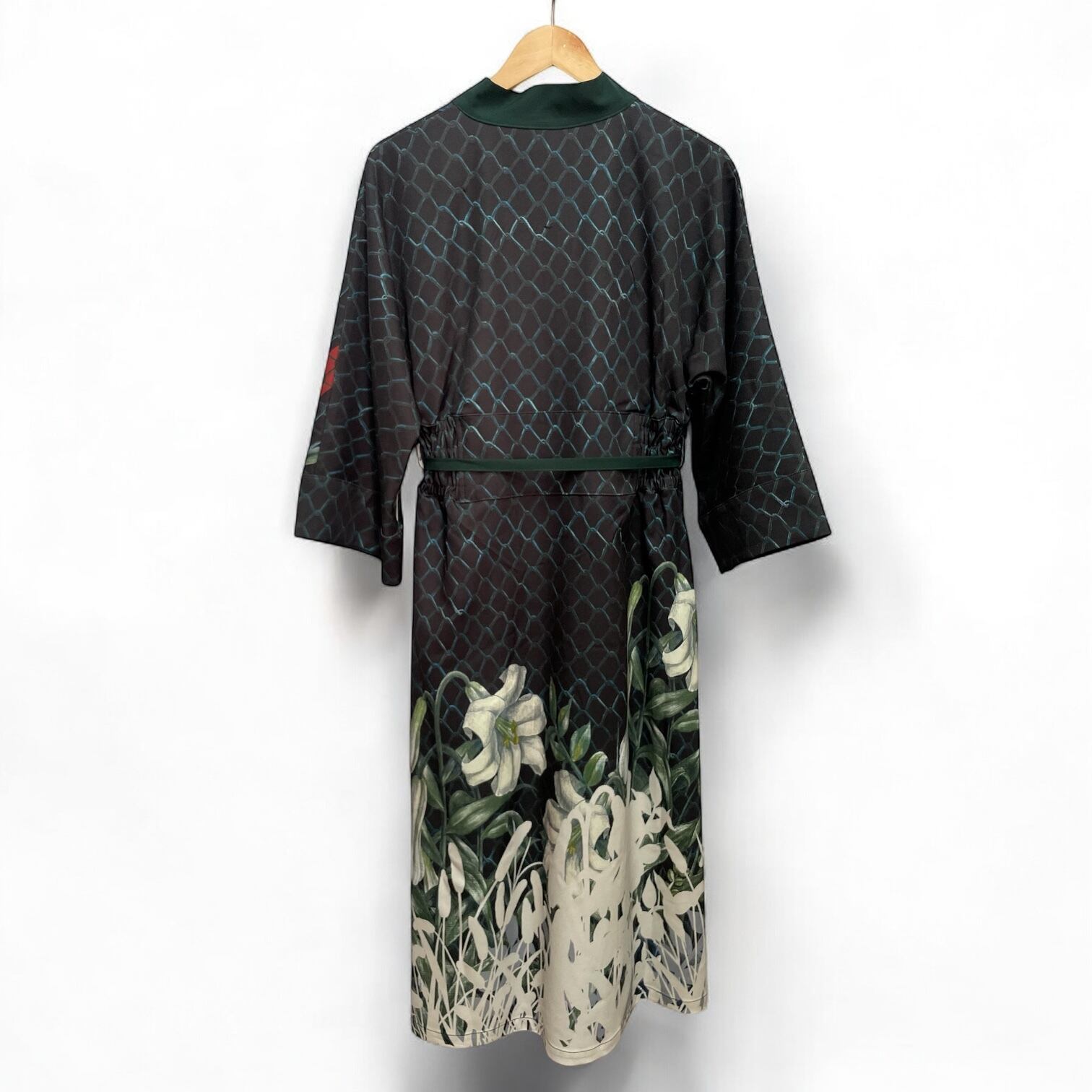 着物・オブジェ作家「重宗玉緒」とのコラボ商品。 まるで着物のようなシルエットのワンピースです。 1枚で着もの風に着たり、スカートやワイドパンツと合わせてチュニックとしても着ていただけます。 半幅帯や帯ベルトと合わせるとより着物感が増しておすすめです! 【サイズ】 着丈 120cm 裄丈68cm ウェスト 80〜106cm(ゴム) 【素材・成分】 ポリエステル 【生産地】 中国